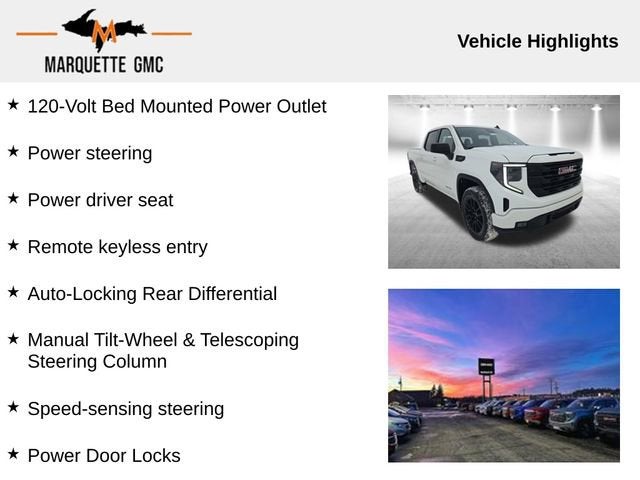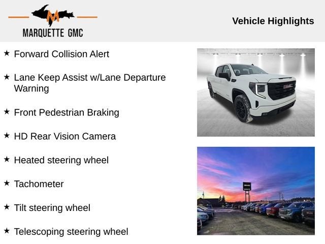 We look forward to working with you. We service all the following counties Marquette, Mackinac, Chippewa, Luce, Alger, Schoolcraft, Delta, Menominee Michigan, Dickinson, Iron, Baraga, Houghton, Keweenaw, Ontonagon, Gogebic, Emmit, Cheboygan, Marinette WI, Florence WI, Oconto WI, Menominee WI, Brown WI, Iron WI, Ashland WI, Bayfield WI Forest WI. Check out the rest of this vehicle's features High Capacity Suspension Package, Trailering Package (Hitch Guidance), 8-Speed Automatic, 4WD, Black Cloth, 120-Volt Bed Mounted Power Outlet, 4-Way Manual Passenger Seat Adjuster, 6 Speakers, Air Conditioning, Auto High-beam Headlights, Auto-Locking Rear Differential, Automatic temperature control, Delay-off headlights, Following Distance Indicator, Forward Collision Alert, Front dual zone A/C, Front fog lights, Front Pedestrian Braking, HD Rear Vision Camera, Heated door mirrors, Heated Driver & Front Outboard Passenger Seating, Heated steering wheel, LED Cargo Area Lighting, Navigation System, Panic alarm, Power Door Locks, Power driver seat, Power steering, Push Button Start, Rear reading lights, Remote keyless entry, Speed control, Speed-sensing steering, Split folding rear seat, Tachometer, Telescoping steering wheel, Tilt steering wheel, 120-Volt Interior Power Outlet, 2 Charge/Data USB Ports, 2 Type-C Charge-Only Rear USB Ports, 220 Amp Alternator, 3.42 Rear Axle Ratio, 4-Wheel Disc Brakes, 6-Speaker Audio System Feature, ABS brakes, Alloy wheels, AM/FM radio: SiriusXM with 360L, Apple CarPlay/Android Auto, Automatic Emergency Braking, Body Color Header w/Gloss Black Mesh Grille Bars, Brake assist, Buckle to Drive, Bumpers: body-color, Cloth Seat Trim, Color-Keyed Carpeting Floor Covering, Compass, Deep-Tinted Glass, Driver door bin, Driver vanity mirror, Dual front impact airbags, Dual front side impact airbags, Electric Rear-Window Defogger, Electronic Stability Control, Emergency communication system: OnStar, Front 40/20/40 Split-Bench Seat, Front anti-roll bar, Front Center Armrest w/Storage, Front Frame-Mounted Black Recovery Hooks, Front reading lights, Front Rubberized-Vinyl Floor Mats, Front wheel independent suspension, Fully automatic headlights, Genuine wood dashboard insert, Heated front seats, Illuminated entry, Integrated Trailer Brake Controller, Keyless Open & Start, Low tire pressure warning, Occupant sensing airbag, OnStar Services Capable, Outside temperature display, Overhead airbag, Overhead console, Passenger door bin, Passenger vanity mirror, Power door mirrors, Power Front Windows w/Passenger Express Down, Power windows, Radio data system, Radio: Premium GMC Infotainment Audio System, Rear Rubberized-Vinyl Floor Mats, Rear seat center armrest, Rear step bumper, Rear window defroster, Remote Vehicle Starter System, Security system, Steering Wheel Audio Controls, Steering wheel mounted audio controls, Traction control, Trip computer, Variably intermittent wipers, Voltmeter, Wi-Fi Hotspot Capable, and Wireless Apple CarPlay/Wireless Android Auto.
