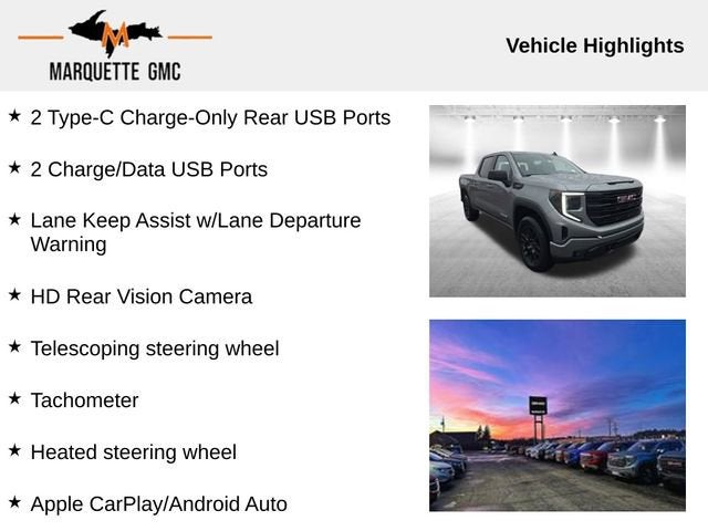 We look forward to working with you. We service all the following counties Marquette, Mackinac, Chippewa, Luce, Alger, Schoolcraft, Delta, Menominee Michigan, Dickinson, Iron, Baraga, Houghton, Keweenaw, Ontonagon, Gogebic, Emmit, Cheboygan, Marinette WI, Florence WI, Oconto WI, Menominee WI, Brown WI, Iron WI, Ashland WI, Bayfield WI Forest WI. Check out the rest of this vehicle's features High Capacity Suspension Package, Trailering Package (Hitch Guidance), 8-Speed Automatic, 4WD, Jet Black Cloth, 120-Volt Bed Mounted Power Outlet, 120-Volt Interior Power Outlet, 2 Charge/Data USB Ports, 2 Type-C Charge-Only Rear USB Ports, 4-Way Manual Passenger Seat Adjuster, Air Conditioning, Apple CarPlay/Android Auto, Auto High-beam Headlights, Automatic temperature control, Front 40/20/40 Split-Bench Seat, Front fog lights, HD Rear Vision Camera, Heated door mirrors, Heated Driver & Front Outboard Passenger Seating, Heated steering wheel, LED Cargo Area Lighting, Navigation System, Power Door Locks, Power driver seat, Power Front Windows w/Passenger Express Down, Power steering, Power windows, Rear step bumper, Remote Vehicle Starter System, Security system, Speed control, Tachometer, Telescoping steering wheel, Tilt steering wheel, 220 Amp Alternator, 3.42 Rear Axle Ratio, 4-Wheel Disc Brakes, 6 Speakers, 6-Speaker Audio System Feature, ABS brakes, Alloy wheels, AM/FM radio: SiriusXM with 360L, Auto-Locking Rear Differential, Automatic Emergency Braking, Body Color Header w/Gloss Black Mesh Grille Bars, Brake assist, Buckle to Drive, Bumpers: body-color, Cloth Seat Trim, Color-Keyed Carpeting Floor Covering, Compass, Deep-Tinted Glass, Delay-off headlights, Driver door bin, Driver vanity mirror, Dual front impact airbags, Dual front side impact airbags, Electric Rear-Window Defogger, Electronic Stability Control, Emergency communication system: OnStar, Following Distance Indicator, Forward Collision Alert, Front anti-roll bar, Front Center Armrest w/Storage, Front dual zone A/C, Front Frame-Mounted Black Recovery Hooks, Front Pedestrian Braking, Front reading lights, Front Rubberized-Vinyl Floor Mats, Front wheel independent suspension, Fully automatic headlights, Genuine wood dashboard insert, Heated front seats, Illuminated entry, Integrated Trailer Brake Controller, Keyless Open & Start, Low tire pressure warning, Occupant sensing airbag, OnStar Services Capable, Outside temperature display, Overhead airbag, Overhead console, Panic alarm, Passenger door bin, Passenger vanity mirror, Power door mirrors, Push Button Start, Radio data system, Radio: Premium GMC Infotainment Audio System, Rear reading lights, Rear Rubberized-Vinyl Floor Mats, Rear seat center armrest, Rear window defroster, Remote keyless entry, Speed-sensing steering, Split folding rear seat, Steering Wheel Audio Controls, Steering wheel mounted audio controls, Traction control, Trip computer