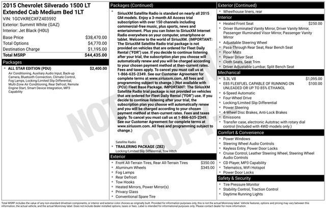 We look forward to working with you. We service all the following counties Marquette, Mackinac, Chippewa, Luce, Alger, Schoolcraft, Delta, Menominee Michigan, Dickinson, Iron, Baraga, Houghton, Keweenaw, Ontonagon, Gogebic, Emmit, Cheboygan, Marinette WI, Florence WI, Oconto WI, Menominee WI, Brown WI, Iron WI, Ashland WI, Bayfield WI Forest WI. Check out the rest of this vehicle's features All Star Edition (110-Volt AC Power Outlet, Dual-Zone Automatic Climate Control, Electric Rear-Window Defogger, Front Halogen Fog Lamps, Radio: AM/FM 8 Diagonal Color Touch Screen, Rear Vision Camera w/Dynamic Guide Lines, Remote Vehicle Starter System, SiriusXM Satellite Radio, and Theft Deterrent System (Unauthorized Entry)), Trailering Equipment (Heavy-Duty Rear Locking Differential), 6-Speed Automatic Electronic with Overdrive, 4WD, Black Cloth, 10-Way Power Driver's Seat Adjuster, 150 Amp Alternator, 3.42 Rear Axle Ratio, 4-Wheel Disc Brakes, 4.2 Diagonal Color Display Driver Info Center, 40/20/40 Front Split Bench Seat, 6 Speaker Audio System, 6 Speakers, ABS brakes, Air Conditioning, Alloy wheels, AM/FM radio: SiriusXM, Auxiliary External Transmission Oil Cooler, Bluetooth® For Phone, Body Color Bodyside Moldings, Body Color Door Handles, Body-Color Mirror Caps, Body-Color Power Adjustable Heated Outside Mirrors, Bodyside moldings, Brake assist, Bumpers: chrome, CD player, Cloth Seat Trim, Color-Keyed Carpeting w/Rubberized Vinyl Floor Mats, Compass, Deep-Tinted Glass, Delay-off headlights, Driver & Front Passenger Illuminated Vanity Mirrors, Driver door bin, Driver vanity mirror, Dual front impact airbags, Dual front side impact airbags, E85 FlexFuel Capable, Electronic Stability Control, Emergency communication system: OnStar Directions & Connections, EZ Lift & Lower Tailgate, Front anti-roll bar, Front Center Armrest w/Storage, Front Chrome Bumper, Front reading lights, Front wheel independent suspension, Fully automatic headlights, Heated door mirrors, Heated Driver & Front Passenger Seats, Illuminated entry, Integrated Trailer Brake Controller, Leather Wrapped Steering Wheel w/Cruise Controls, Low tire pressure warning, Manual Tilt Wheel Steering Column, Occupant sensing airbag, OnStar 6 Months Directions & Connections Plan, OnStar w/4G LTE, Outside temperature display, Overhead airbag, Overhead console, Panic alarm, Passenger door bin, Passenger vanity mirror, Power door mirrors, Power steering, Power windows, Power Windows w/Driver Express Up, Premium audio system: Chevrolet MyLink, Radio data system, Radio: AM/FM Audio System w/Chevrolet MyLink, Rear 60/40 Folding Bench Seat (Folds Up), Rear Chrome Bumper, Rear reading lights, Rear step bumper, Rear Wheelhouse Liners, Remote Keyless Entry, Remote keyless entry, Single Slot CD/MP3 Player, Speed control, Speed-sensing steering, Split folding rear seat, Steering Wheel Audio Controls, Steering wheel mounted audio controls, Tachometer, Tilt steering wheel, Traction control, Trip computer, Variably intermittent wipers, Voltmeter, and Wheels: 17 x 8 Bright Machined Aluminum.