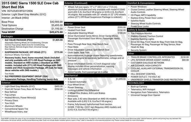 This 2015 GMC Sierra 1500 SLE is a rugged and capable 4x4 pickup that's ready to tackle any adventure. Boasting a powerful EcoTec3 5.3L V8 engine, this Sierra delivers impressive performance and efficiency, with 16 city/22 highway MPG.
