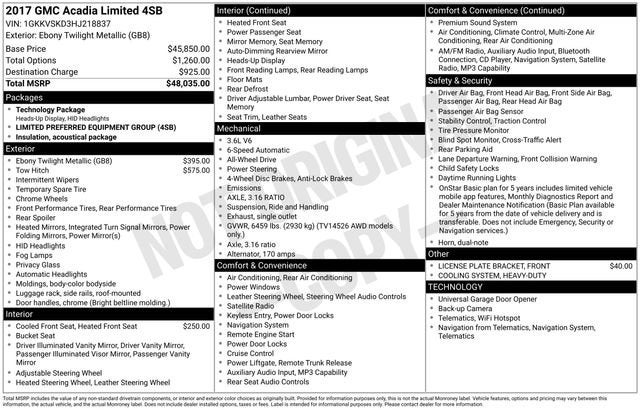 Backed by a comprehensive warranty and a commitment to exceptional customer service, this 2017 GMC Acadia Limited Limited is a smart investment that will deliver years of reliable performance and enjoyment. Don't miss your chance to experience the exceptional quality and capabilities of this remarkable vehicle.