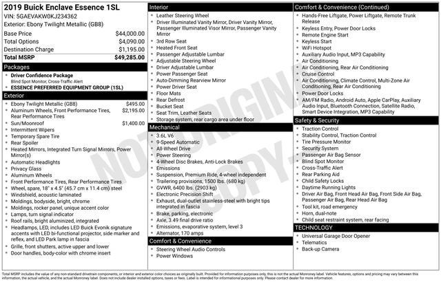 Boasting an impressive array of features, the Enclave Essence W/Sunroof is equipped to exceed your expectations. Highlights include: