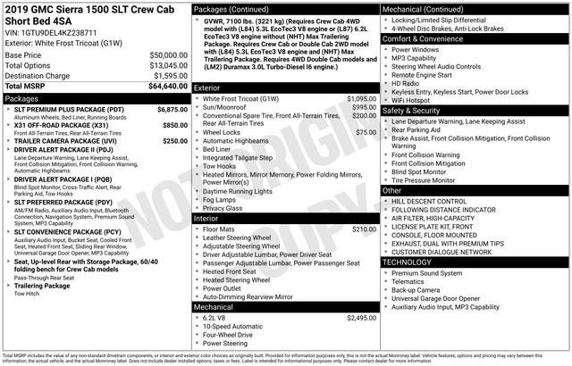 4x4, **BACKUP CAMERA**, **Bluetooth®**, **MEMORY SEATS**, Sunroof/Moonroof, Leather Seats, Heated Seats, Heated Steering Wheel, **LOCAL TRADE**, 10-Speed Automatic, 4WD, Jet Black Leather, 12-Volt Rear Auxiliary Power Outlet, 120-Volt Bed Mounted Power Outlet, 120-Volt Instrument Panel Power Outlet, 170 Amp Alternator, 2 USB Ports, 2 USB Ports (1st Row), Air Conditioning, Apple CarPlay/Android Auto, Auto-dimming Rear-View mirror, Auxiliary External Transmission Oil Cooler, Chrome Assist Steps, Chrome Grille, Color-Keyed Carpeting Floor Covering, Compass, Deep-Tinted Glass, Driver Alert Package I, Driver Alert Package II, Dual Exhaust w/Premium Tips, Electric Rear-Window Defogger, Electrical Lock Control Steering Column, Floor Mounted Console, Following Distance Indicator, Forward Collision Alert, Front Bucket Seats, Front fog lights, Front Frame-Mounted Black Recovery Hooks, Front Pedestrian Braking, GMC 4G LTE, GMC Connected Access, HD Radio, Heated 2nd Row Outboard Seats, Heated Driver & Front Passenger Seating, Heated steering wheel, Heavy-Duty Rear Locking Differential, High-Capacity Air Filter, Hill Descent Control, Hitch Guidance, Hitch Guidance w/Hitch View, In-Vehicle Trailering App, Integrated Trailer Brake Controller, IntelliBeam Automatic High Beam On/Off, Keyless Open & Start, Lane Change Alert w/Side Blind Zone Alert, Lane Keep Assist w/Lane Departure Warning, LED Cargo Area Lighting, Low Speed Forward Automatic Braking, Manual Tilt-Wheel & Telescoping Steering Column, Off-Road Suspension, OnStar & GMC Connected Services Capable, Perimeter Lighting, Power Door Locks, Power door mirrors, Power Front Passenger Windows w/Express Up/Down, Power Front Windows w/Driver Express Up/Down, Power Rear Windows w/Express Down, Power Sliding Rear Window w/Rear Defogger, Power Sunroof, Preferred Equipment Group 4SA, Premium Bose 7-Speaker Sound System, Radio: Premium GMC Infotainment Sys w/Navigation, Rear Cross Traffic Alert, Rear Dual USB Charging-Only Ports, Rear step bumper, Rear Wheelhouse Liners, Remote Vehicle Starter System, Safety Alert Seat, Security system, SiriusXM Radio, SLT Convenience Package, SLT Preferred Package, SLT Premium Plus Package, Speed control, Spray-On Pickup Bed Liner w/GMC Logo, Steering Wheel Audio Controls, Trailer Camera Package, Trailer Tire Pressure Monitor System, Trailering Package, Ultrasonic Front & Rear Park Assist, Universal Home Remote, Ventilated Driver & Front Passenger Seats, Wireless Charging, X31 Hard Badge, X31 Off-Road Package.