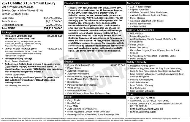 This 2021 Cadillac XT5 Premium Luxury is a remarkable blend of style, technology, and capability. We invite you to experience its exceptional qualities firsthand. Schedule a test drive today and discover why the XT5 is the perfect choice for your next luxury crossover.
