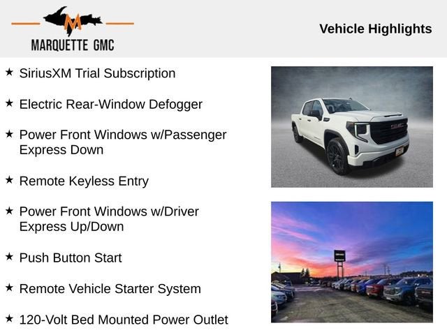 We look forward to working with you. We service all the following counties Marquette, Mackinac, Chippewa, Luce, Alger, Schoolcraft, Delta, Menominee Michigan, Dickinson, Iron, Baraga, Houghton, Keweenaw, Ontonagon, Gogebic, Emmit, Cheboygan, Marinette WI, Florence WI, Oconto WI, Menominee WI, Brown WI, Iron WI, Ashland WI, Bayfield WI Forest WI. Check out the rest of this vehicle's features Convenience Package (Deep-Tinted Glass, Electric Rear-Window Defogger, EZ Lift Power Lock & Release Tailgate, Heated Power-Adjustable Outside Mirrors, and LED Cargo Area Lighting), Graphite Edition (Body Color Lower Front Bumper, Body Color Upper Grille, Color-Keyed Carpeting Floor Covering, Front Rubberized-Vinyl Floor Mats, Rear Body-Color Bumper, Rear Rubberized-Vinyl Floor Mats, Remote Vehicle Starter System, SiriusXM Trial Subscription, Theft Deterrent System (Unauthorized Entry), and Wheels: 20 x 9 High Gloss Black Painted Aluminum), High Capacity Suspension Package, Pro Value Package, Trailering Package (Hitch Guidance), Standard Suspension Package, 8-Speed Automatic, 4WD, Black Cloth, 120-Volt Bed Mounted Power Outlet, 120-Volt Interior Power Outlet, 2 Type-C Charge-Only Rear USB Ports, Apple CarPlay/Android Auto, Auto High-beam Headlights, Automatic Emergency Braking, Forward Collision Alert, Front Pedestrian Braking, Power Front Windows w/Driver Express Up/Down, Power Front Windows w/Passenger Express Down, Power steering, Push Button Start, Remote Keyless Entry, Remote keyless entry, 10-Way Power Driver Seat Adjuster w/Lumbar, 2 Charge/Data USB Ports, 3.42 Rear Axle Ratio, 4-Way Manual Driver Seat Adjuster, 4-Way Manual Passenger Seat Adjuster, 4-Wheel Disc Brakes, 6 Speakers, 6-Speaker Audio System Feature, ABS brakes, Air Conditioning, AM/FM radio, Brake assist, Buckle to Drive, Bumpers: chrome, Chrome Header w/Flat Black Grille Insert Bars, Compass, Delay-off headlights, Driver door bin, Dual front impact airbags, Dual front side impact airbags, Electronic Stability Control, Emergency communication system: OnStar, Following Distance Indicator, Front 40/20/40 Split-Bench Seat, Front anti-roll bar, Front Center Armrest w/Storage, Front Frame-Mounted Black Recovery Hooks, Front reading lights, Front wheel independent suspension, Fully automatic headlights, HD Rear Vision Camera, Illuminated entry, IntelliBeam Automatic High Beam On/Off, Lane Keep Assist w/Lane Departure Warning, Low tire pressure warning, Occupant sensing airbag, OnStar Services Capable, Outside temperature display, Overhead airbag, Overhead console, Panic alarm, Passenger door bin, Passenger vanity mirror, Power Door Locks, Power Rear Windows w/Express Down, Power windows, Radio data system, Radio: GMC Infotainment Audio System, Rear