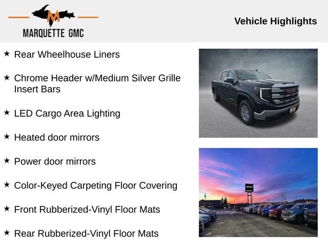 We look forward to working with you. We service all the following counties Marquette, Mackinac, Chippewa, Luce, Alger, Schoolcraft, Delta, Menominee Michigan, Dickinson, Iron, Baraga, Houghton, Keweenaw, Ontonagon, Gogebic, Emmit, Cheboygan, Marinette WI, Florence WI, Oconto WI, Menominee WI, Brown WI, Iron WI, Ashland WI, Bayfield WI Forest WI. Check out the rest of this vehicle's features Preferred Equipment Group 3SA (120-Volt Bed Mounted Power Outlet, 120-Volt Interior Power Outlet, 2 Charge/Data USB Ports, 2 Type-C Charge-Only Rear USB Ports, 4-Way Manual Passenger Seat Adjuster, Color-Keyed Carpeting Floor Covering, Deep-Tinted Glass, Front 40/20/40 Split-Bench Seat, Front Frame-Mounted Black Recovery Hooks, Front Rubberized-Vinyl Floor Mats, HD Rear Vision Camera, Integrated Trailer Brake Controller, OnStar Services Capable, Power Door Locks, Push Button Start, Rear Rubberized-Vinyl Floor Mats, Steering Wheel Audio Controls, Wi-Fi Hotspot Capable, and Wheels: 17 x 8 Bright Silver Painted Aluminum), Preferred Package (Adaptive Cruise Control, Hitch View, Rear Wheelhouse Liners, and Universal Home Remote), Remote Start Package (Electric Rear-Window Defogger and Remote Vehicle Starter System), SLE Convenience Package (Dual-Zone Automatic Climate Control and LED Cargo Area Lighting), SLE Value Package (Auto-Locking Rear Differential), Trailering Package (Hitch Guidance), Standard Suspension Package, 10-Speed Automatic, 4WD, Black Cloth, 6-Speaker Audio System Feature, Apple CarPlay/Android Auto, Auto High-beam Headlights, Cloth Seat Trim, Compass, Following Distance Indicator, Forward Collision Alert, Front Pedestrian Braking, Heated door mirrors, Heated steering wheel, Navigation System, Power door mirrors, Telescoping steering wheel, Tilt steering wheel, Trip computer, 170 Amp Alternator, 220 Amp Alternator, 3.23 Rear Axle Ratio, 3.42 Rear Axle Ratio, 4-Wheel Disc Brakes, 6 Speakers, ABS brakes, Air Conditioning, Alloy wheels, AM/FM radio: SiriusXM with 360L, Automatic Emergency Braking, Automatic temperature control, Auxiliary External Transmission Oil Cooler, Brake assist, Buckle to Drive, Bumpers: chrome, Delay-off headlights, Driver door bin, Driver vanity mirror, Dual front impact airbags, Dual front side impact airbags, Electronic Stability Control, Emergency communication system: OnStar, External Engine Oil Cooling, Front anti-roll bar, Front dual zone A/C, Front reading lights, Front wheel independent suspension,
